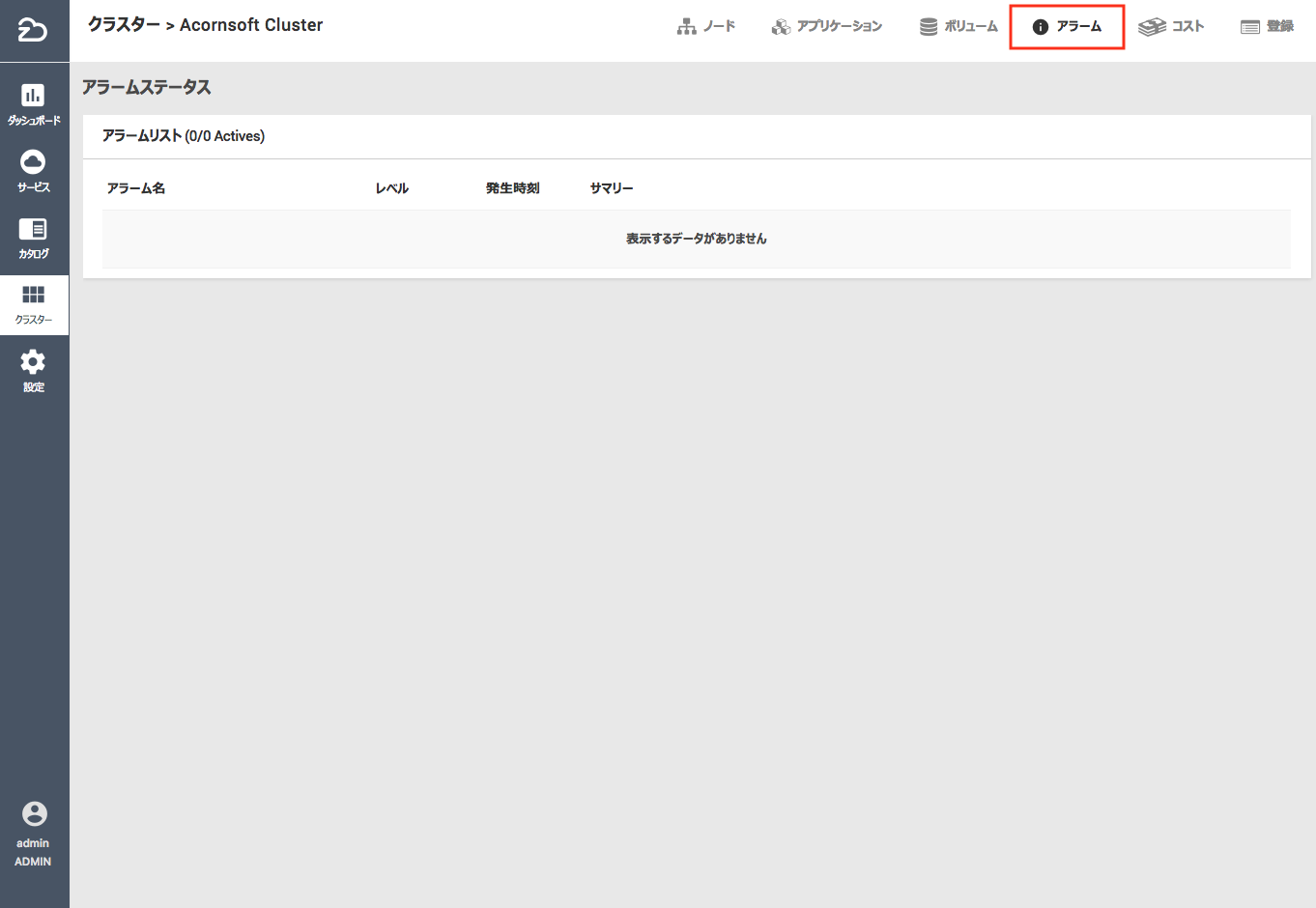 b) アラーム名をクリックすると、 詳細内容の確認が可能。