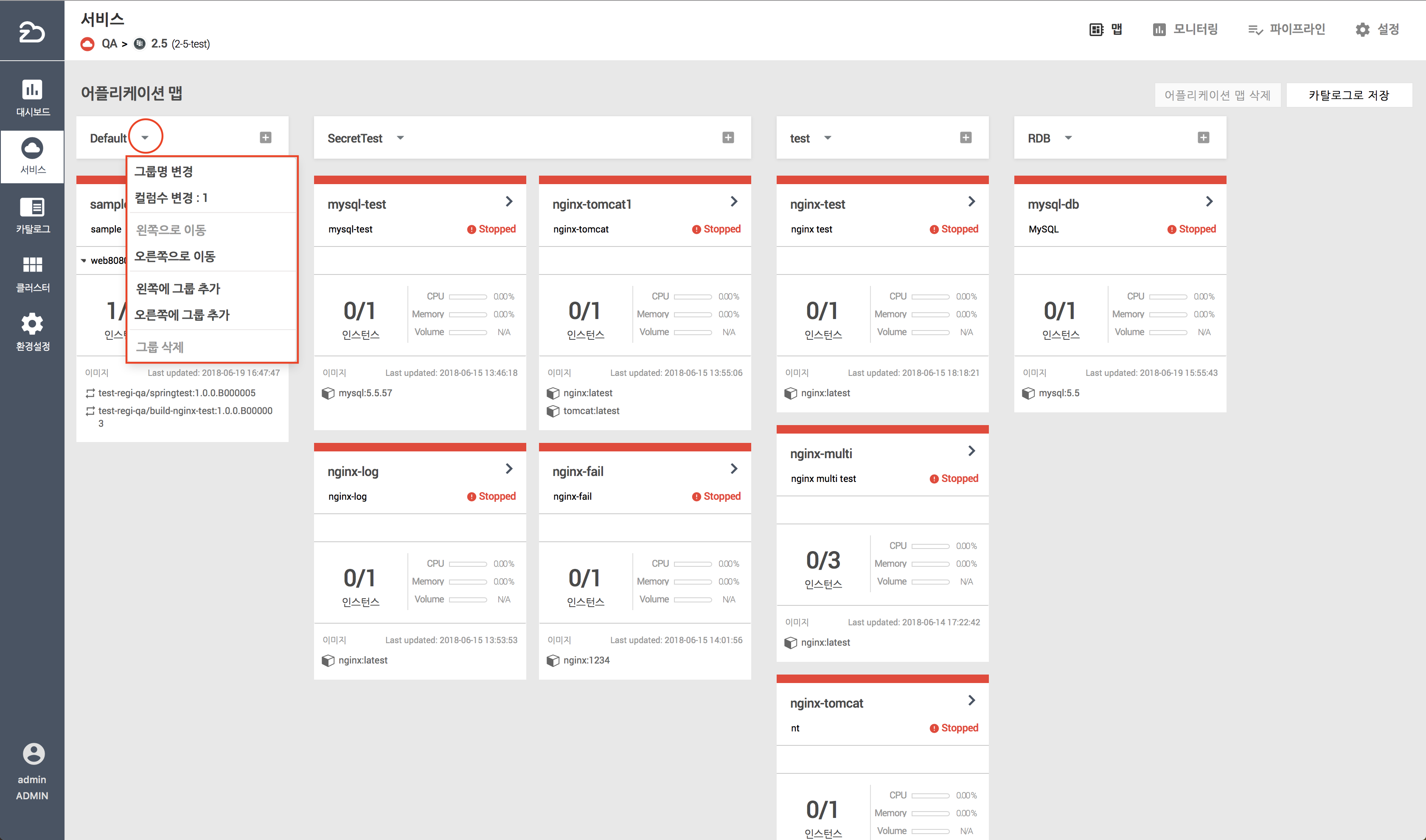 서버에 대하여 그룹으로 관리한다. 해당 그룹에 서버를 생성할 수 있다. 그룹명을 변경하거나, 그룹 추가, 이동, 삭제, 컬럼수 변경이 가능하다.