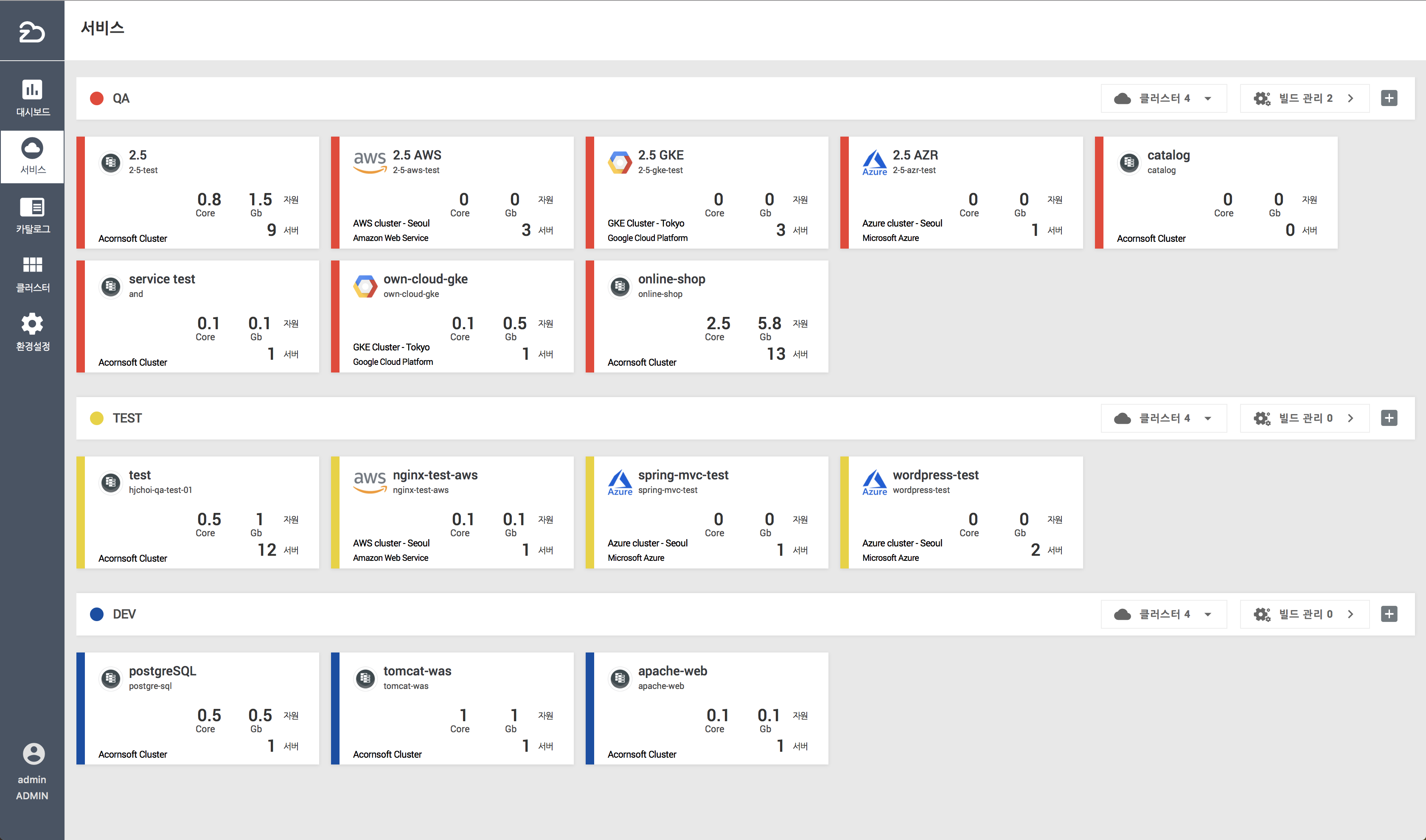 어플리케이션 맵과 해당 서버그룹 및 서버를 관리한다.